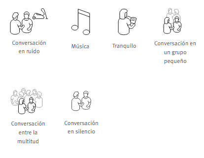 Nivel 7 Rendimiento avanzado en 6 entornos con una gran característica que le ayudará a concentrarse en el habla que viene del frente y los lados en situaciones desafiantes, una mejor conciencia de dónde provienen los sonidos y la capacidad