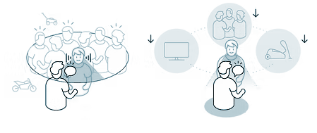 SoundSuite OS los clasifica con precisión en ocho entornos de escucha clave, desde muy silenciosos hasta situaciones ruidosas complejas. SoundSuite OS optimiza la experiencia auditiva según la situación específica de cada cliente, combinando los entornos en una de las miles de combinaciones posibles.