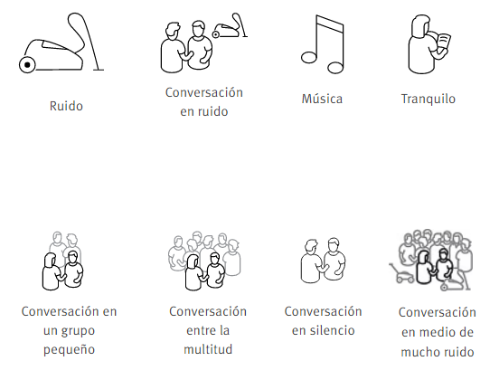 una función para ayudarle a saber de dónde provienen los sonidos y la capacidad de escuchar en entornos silenciosos.